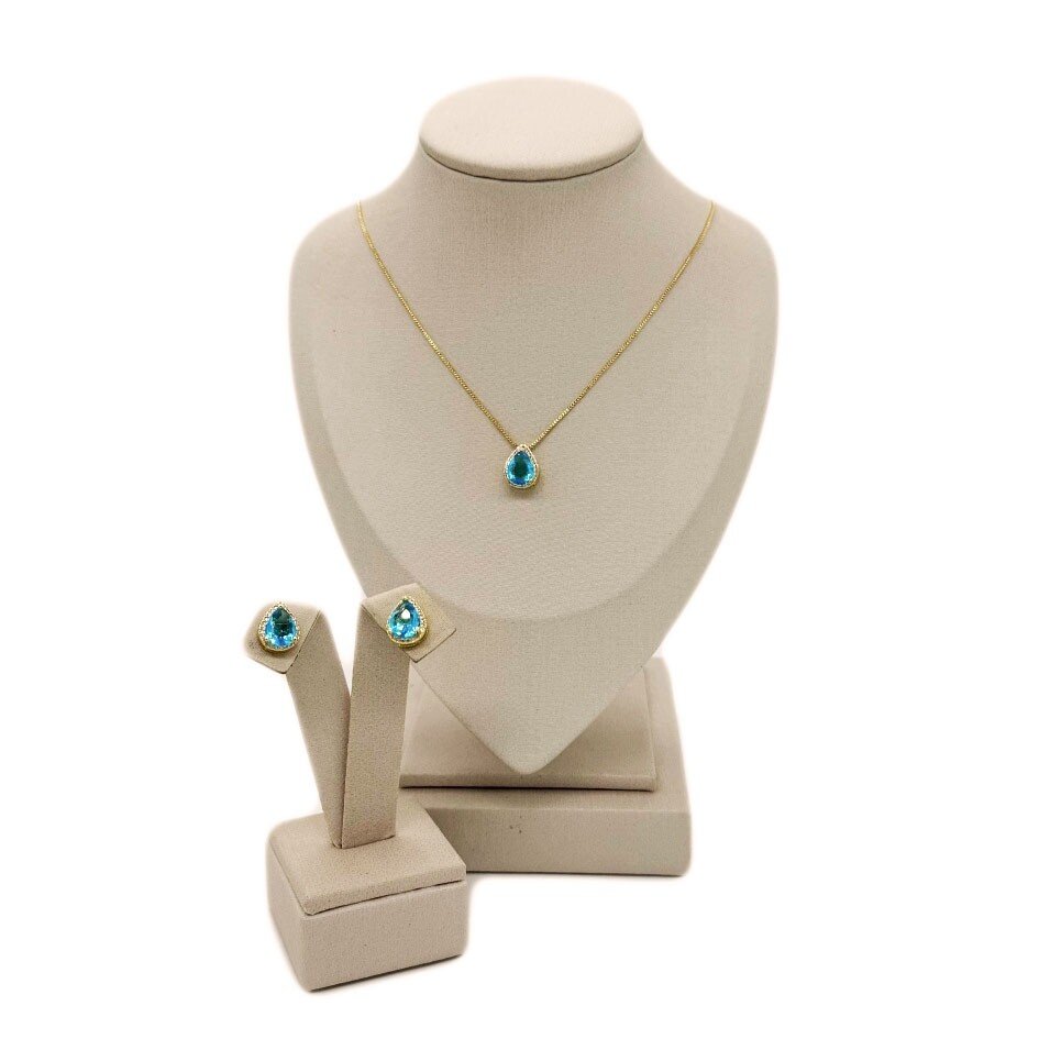 Conjunto Dourado Zircônia Cristal Azul e Microzircônias