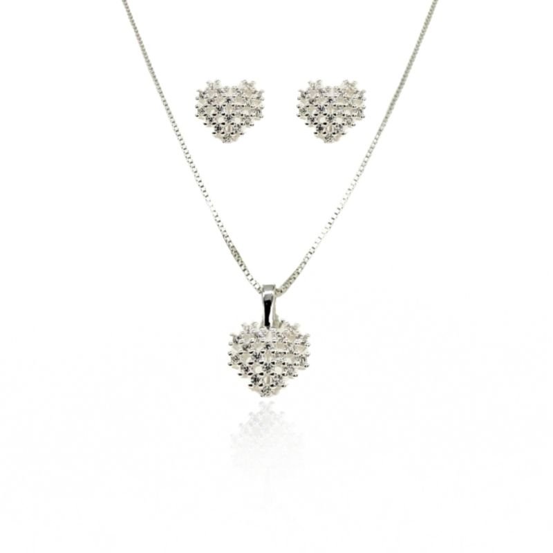 Romântico e encantador, este conjunto em prata 925 é perfeito para quem ama delicadeza e brilho em cada detalhe. A gargantilha estilo veneziana traz um pingente em formato de coração, adornado com microzircônias cravejadas que refletem a luz com sutileza e elegância. Os brincos com o mesmo design completam o conjunto, criando uma combinação harmônica e sofisticada.