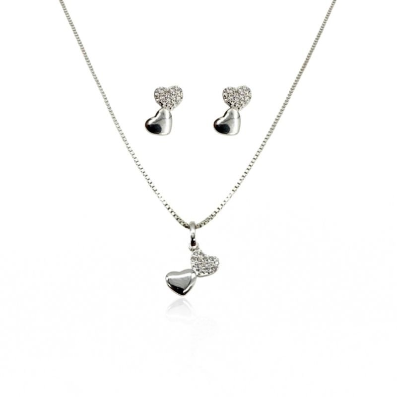 Conjunto Prata Coração Microzircônias