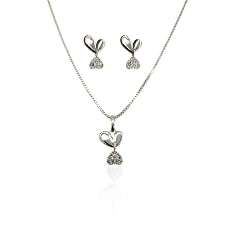 Romântico e encantador, este conjunto em prata 925 é perfeito para quem ama delicadeza e brilho em cada detalhe. A gargantilha estilo veneziana traz um pingente em formato de dois coração, adornado com microzircônias cravejadas que refletem a luz com sutileza e elegância. Os brincos com o mesmo design completam o conjunto, criando uma combinação harmônica e sofisticada.