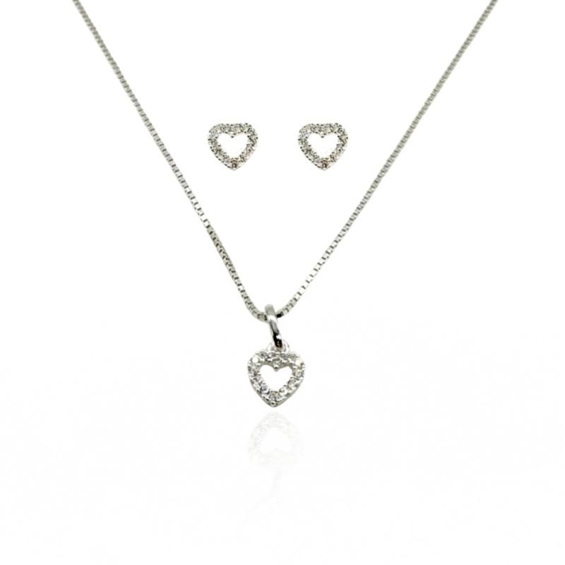 Romântico e delicado, este conjunto em prata 925 é a expressão perfeita do amor e da elegância. A gargantilha veneziana traz um pingente em formato de coração adornado com zircônias cravejadas, que refletem o brilho da luz com suavidade e encanto. Os brincos com o mesmo design completam o conjunto com harmonia e sofisticação.