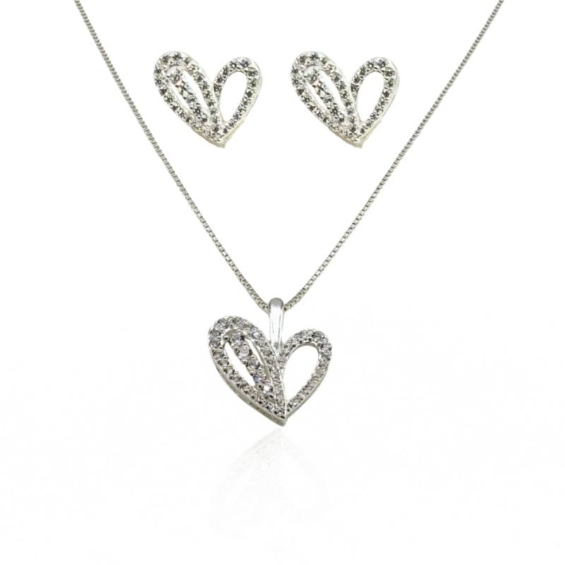 Romântico e delicado, este conjunto em prata 925 é a expressão perfeita do amor e da elegância. A gargantilha veneziana traz um pingente em formato de coração adornado com zircônias cravejadas, que refletem o brilho da luz com suavidade e encanto. Os brincos com o mesmo design completam o conjunto com harmonia e sofisticação.