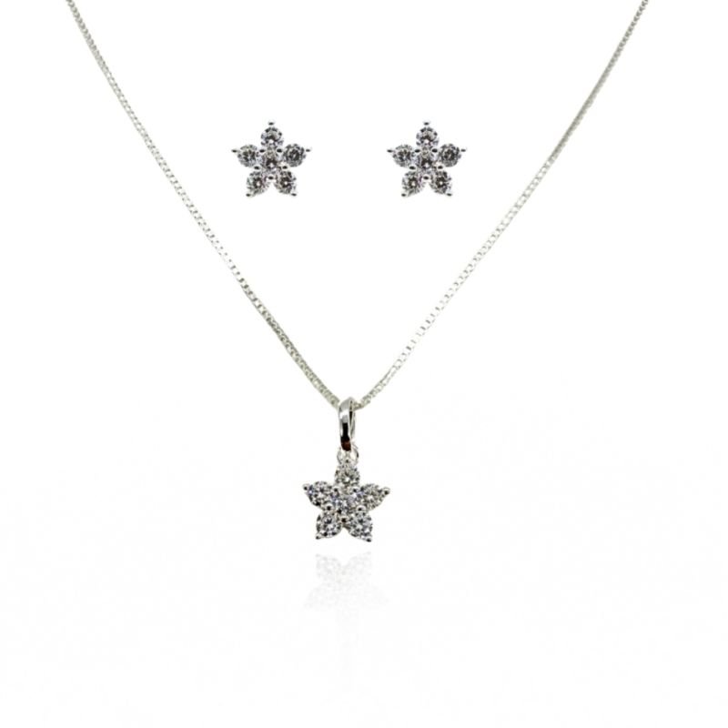 Delicado e encantador, este conjunto em prata 925 reflete o charme das flores em um design sofisticado e feminino. A gargantilha veneziana apresenta um pingente em formato de flor com zircônias, que irradiam brilho e elegância. Os brincos no mesmo formato complementam o conjunto, criando uma harmonia perfeita entre leveza e sofisticação.