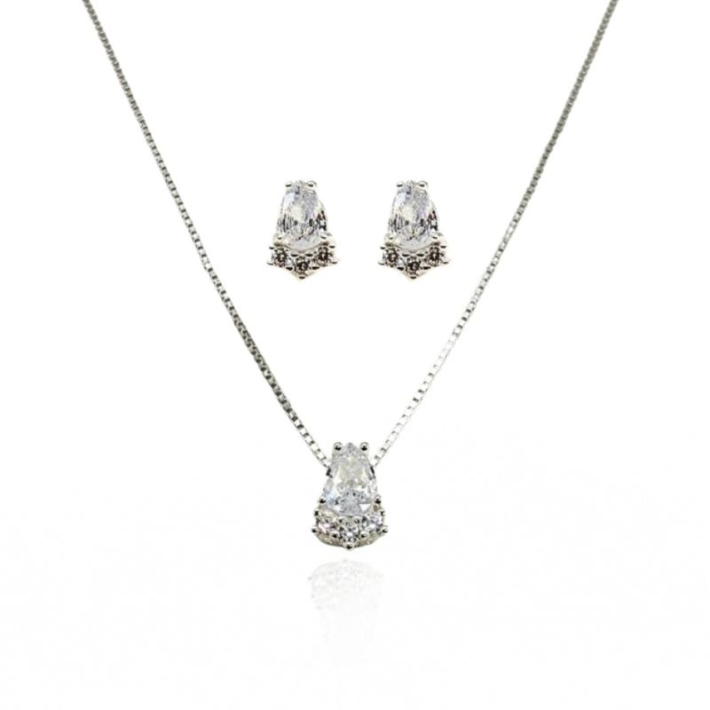 Delicado e cheio de charme, este conjunto em prata 925 é a expressão perfeita de elegância e feminilidade. A gargantilha veneziana traz um pingente com zircônia cristal em formato de gota, com microzircônias cristalinas que realçam o brilho da peça. Os brincos com o mesmo design completam o conjunto com harmonia e sofisticação.