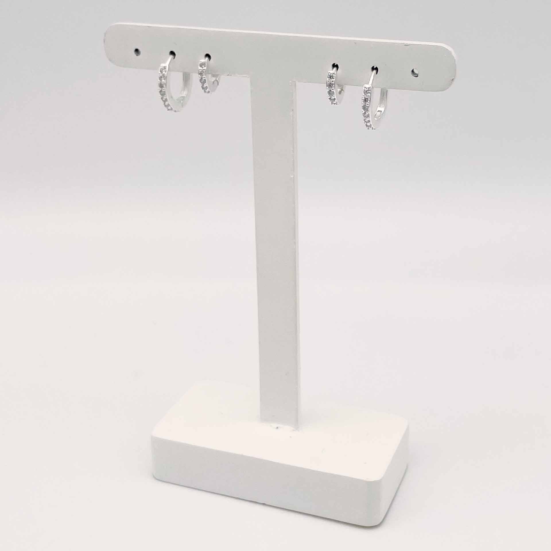 Duo de brincos em prata 925. Brincos em formato de argolas com zircônias. Argola com fecho de encaixe.