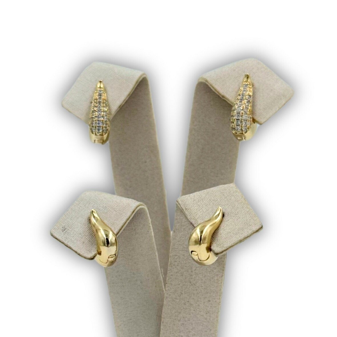 Duo de Brincos estilo argola em formato oval e zircônias.