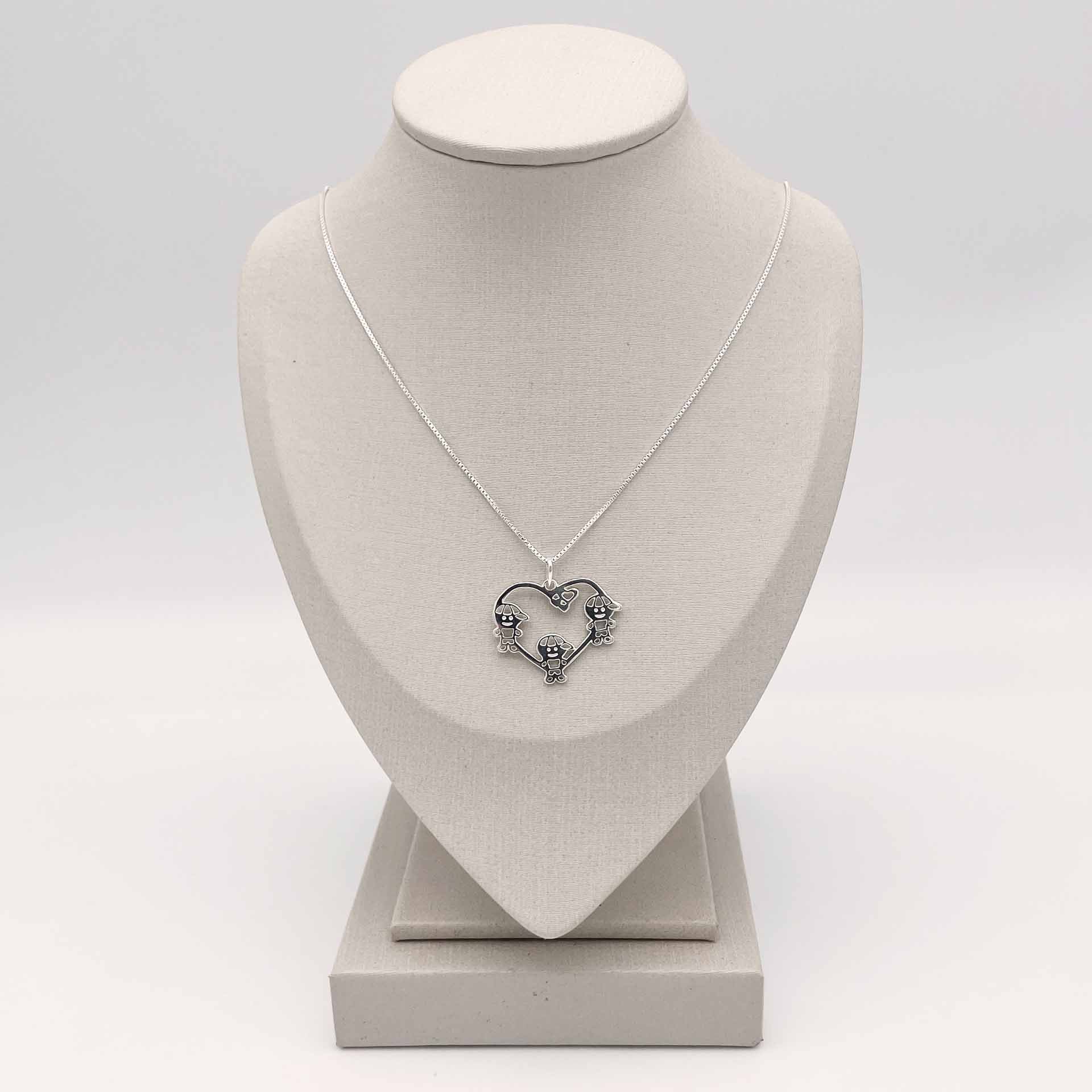 Gargantilha estilo veneziana com pingente de filhos em forma de coração e 3 meninos.