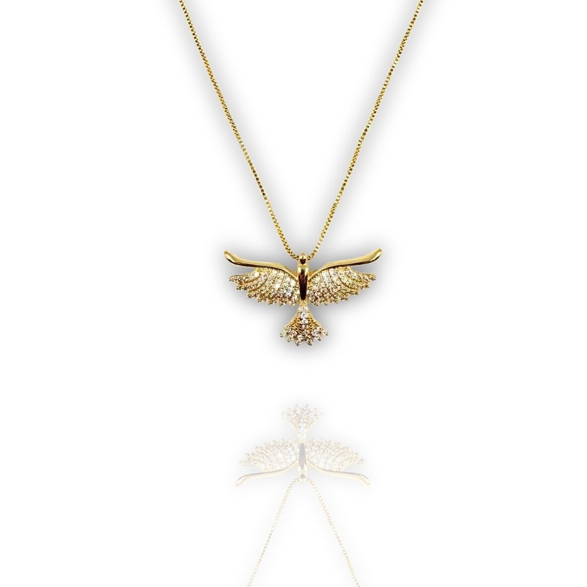 Gargantilha banhada a ouro com pingente do espirito santo com zircônias.