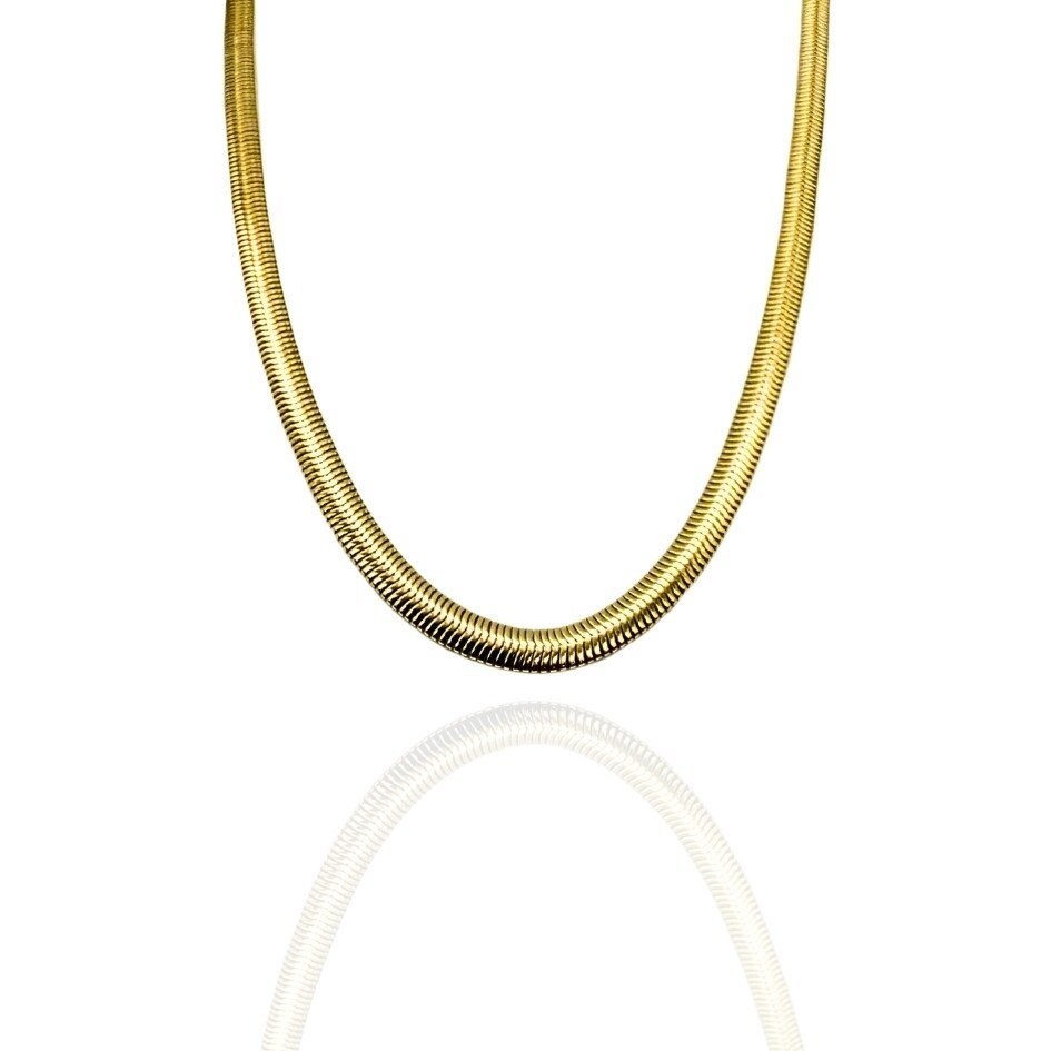 Elegância e modernidade em um só acessório. Esta sofisticada gargantilha banhada a ouro apresenta malha modelo snake, com acabamento liso e brilhante, ideal para compor looks versáteis e cheios de estilo. Possui tamanho ajustável, garantindo um encaixe perfeito e confortável para diferentes estilos e ocasiões.