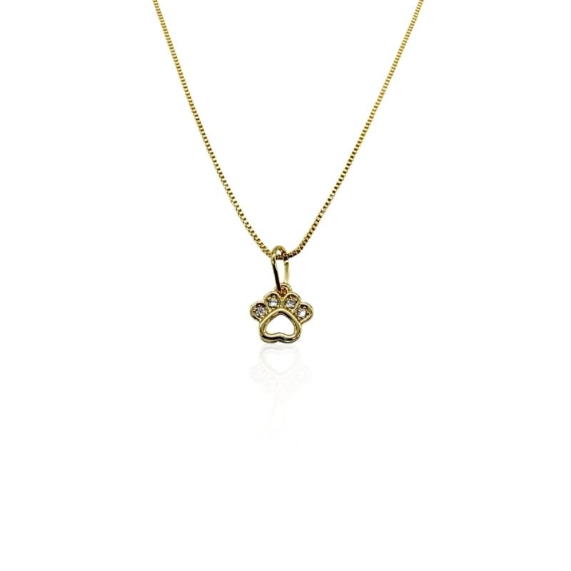 Delicada e cheia de significado, esta gargantilha banhada a ouro traz um pingente em formato de patinha cravejado com zircônias brilhantes, simbolizando o amor e a conexão especial com os pets.