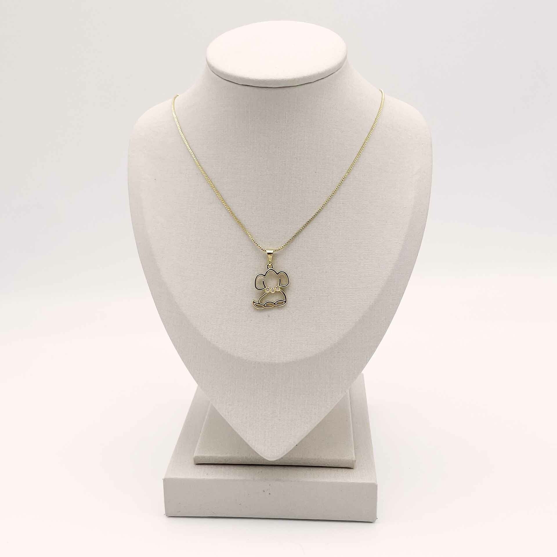 Gargantilha, estilo veneziana, banhada a ouro. Pingente em formato de cachorro e 3 zircônias.