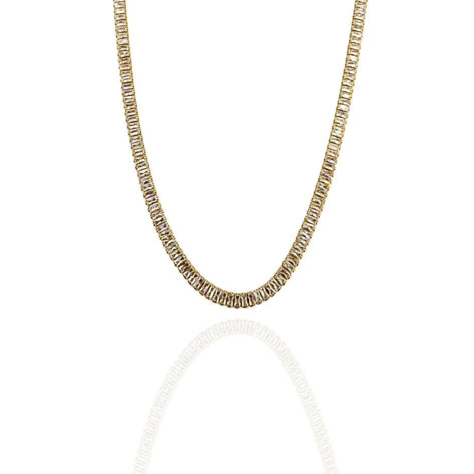 Gargantilha banhada a ouro, estilo riviera, e zircônias cristal.
