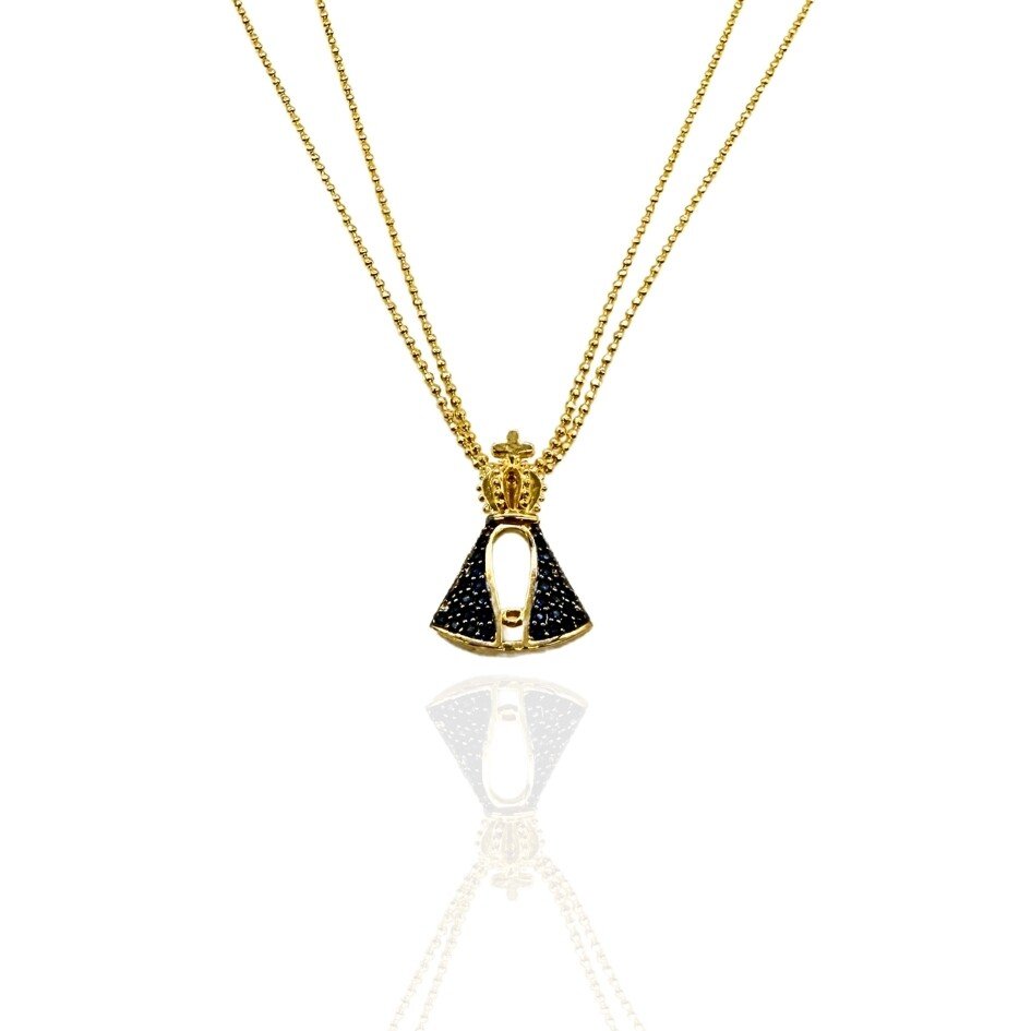 Gargantilha Dupla Dourada Nossa Senhora com Zircônias Azuis