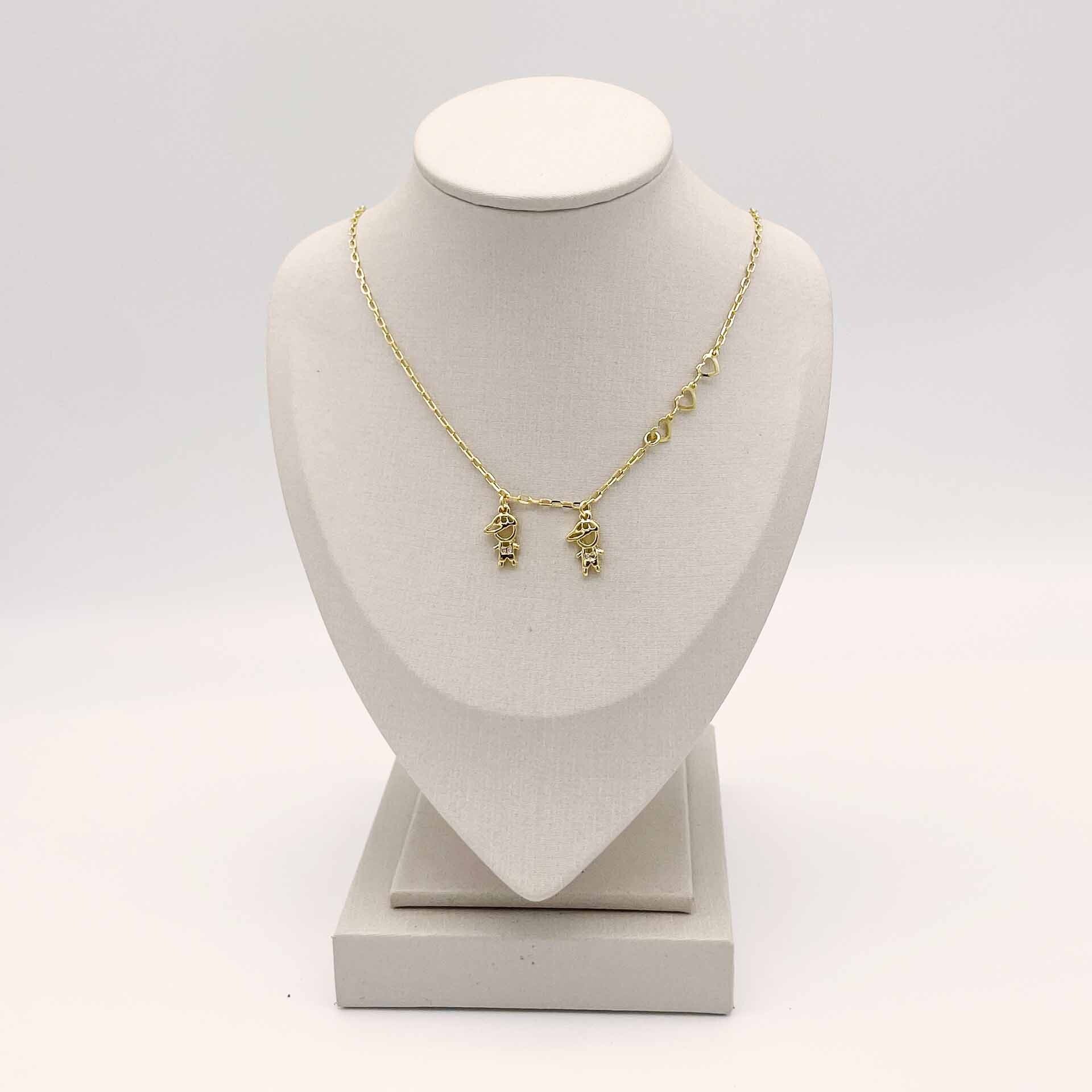 Gargantilha banhada a ouro. Pingente com de 2 meninos.