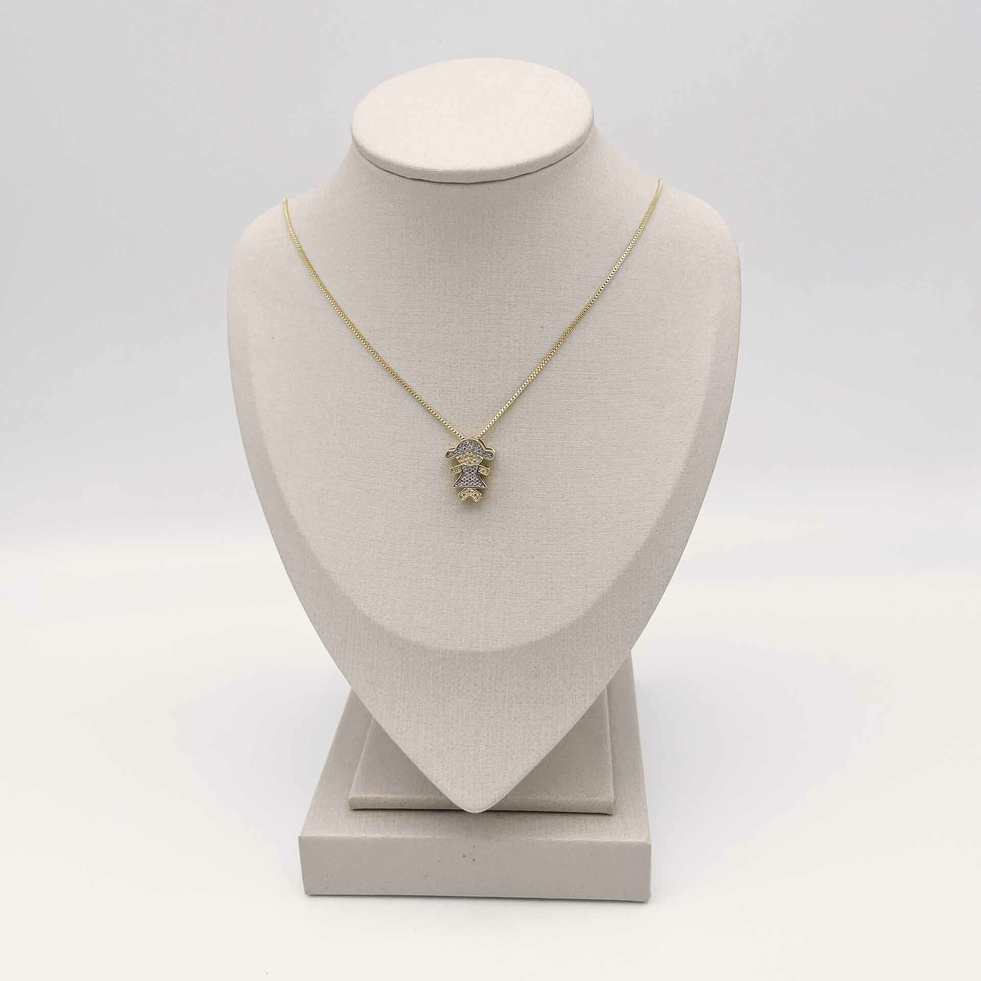Gargantilha filhos, estilo veneziana, banhada a ouro com pingente de menina e zircônias.