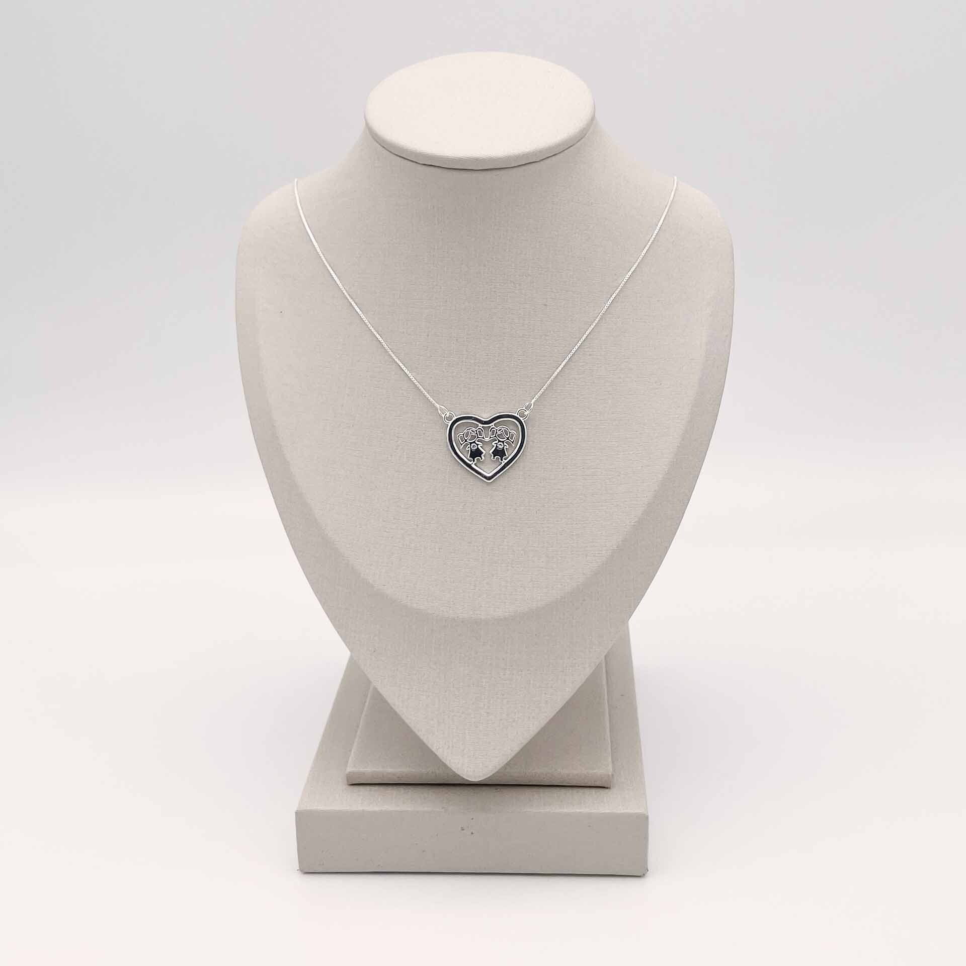 Gargantilha filhos, estilo veneziana, em prata 925. Pingente em forma de coração e 2 meninas no centro do coração.