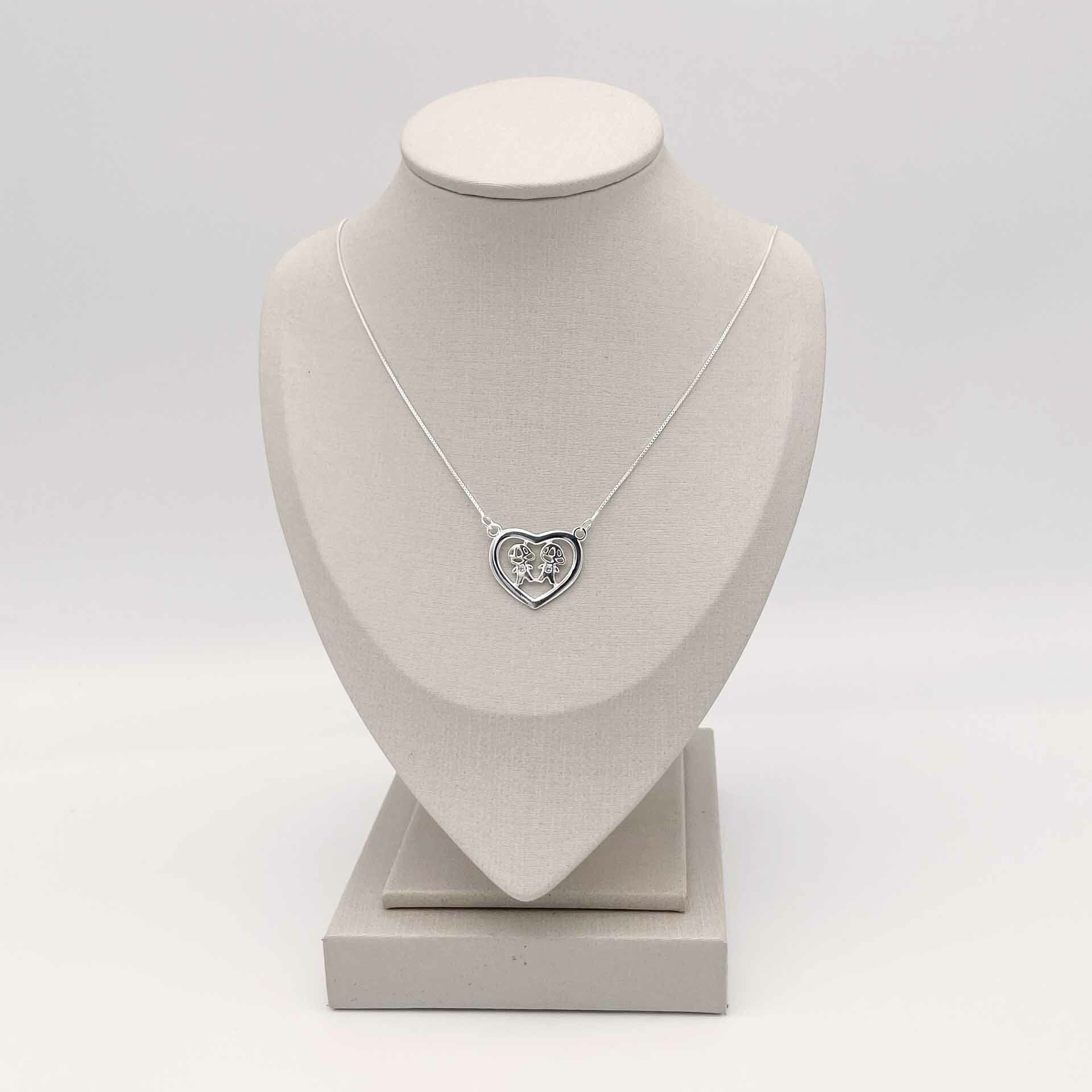 Gargantilha filhos, estilo veneziana, em prata 925. Pingente em forma de coração e 2 meninos no centro do coração.