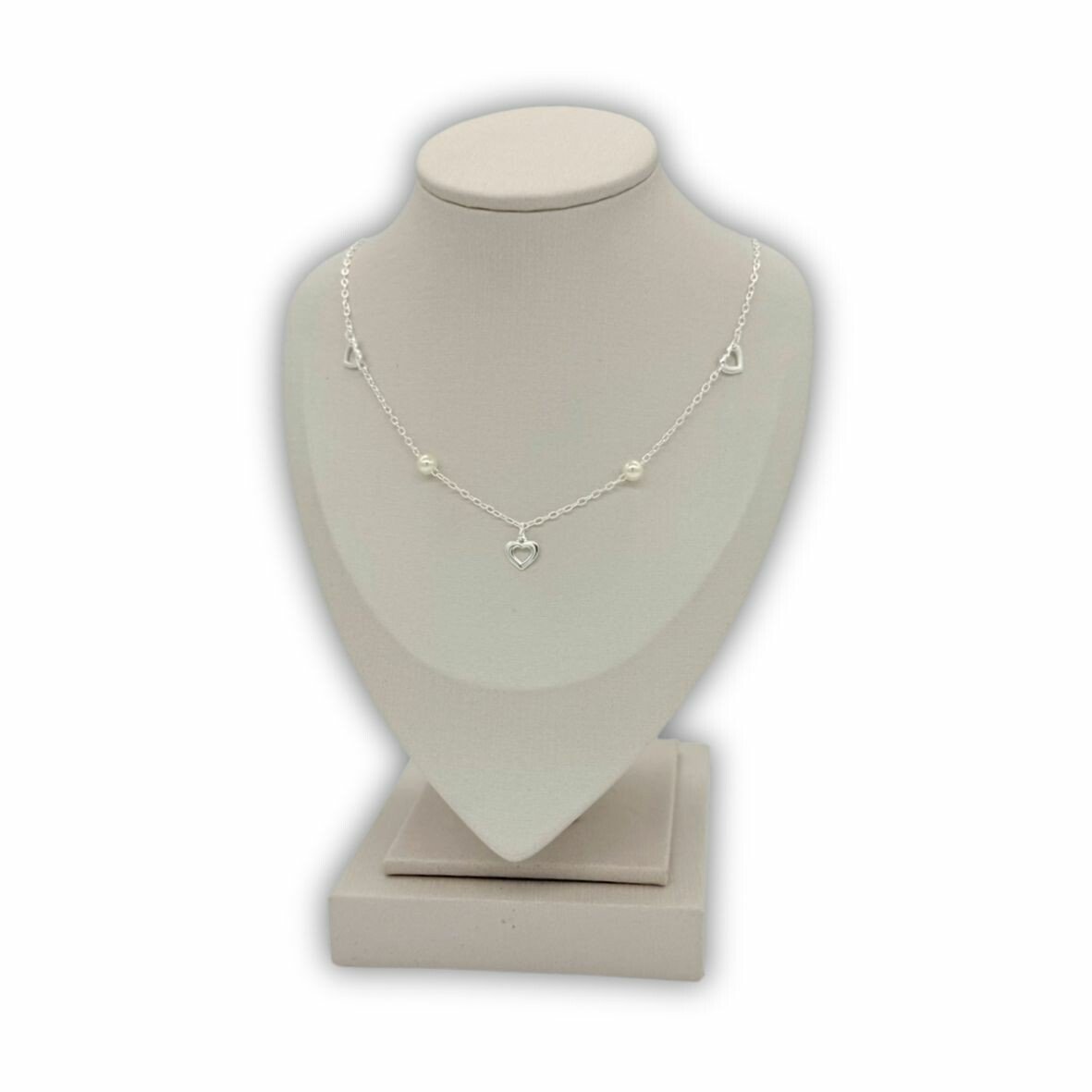 Gargantilha com pingente corações e pérolas.