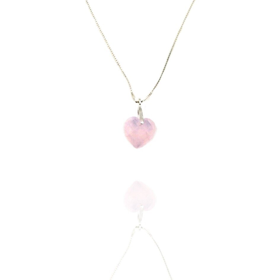 Gargantilha com pingente cristal em forma de coração na cor rosa.