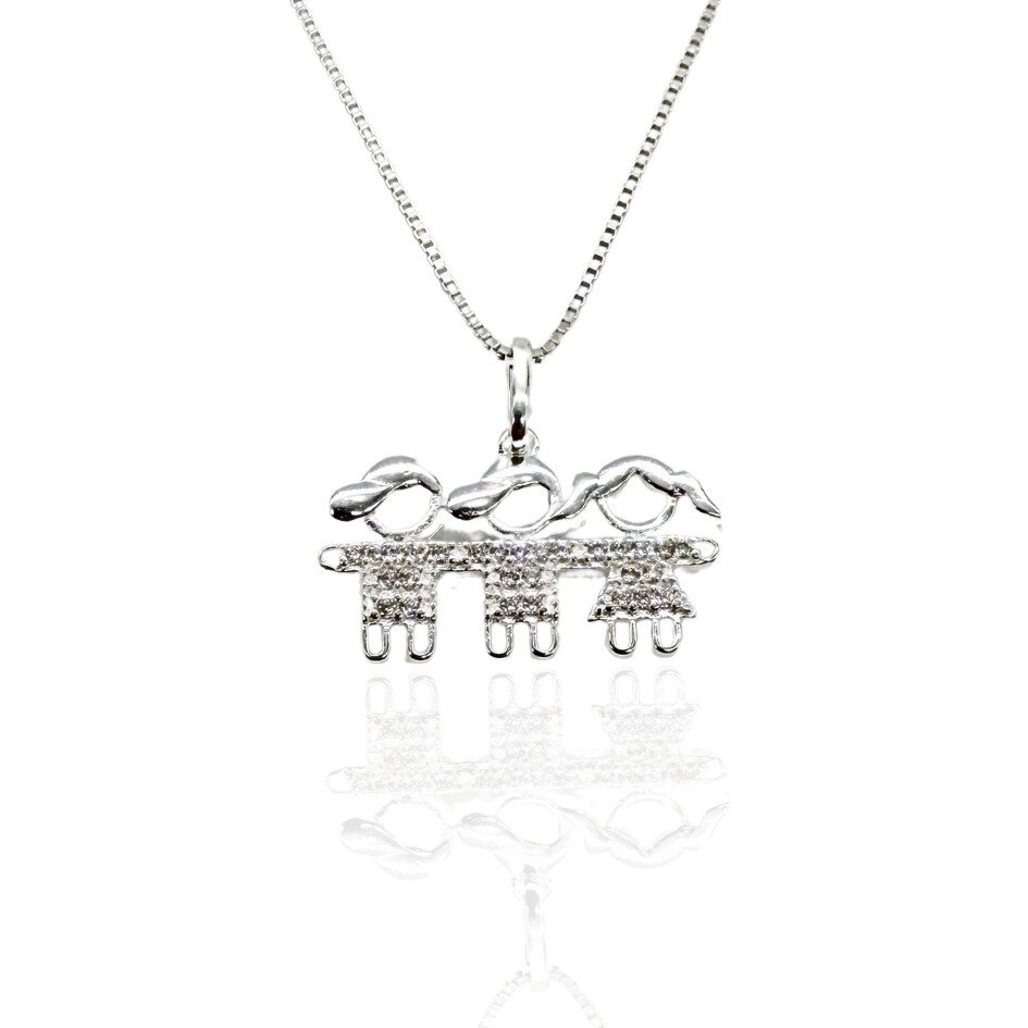 Três amores, um só colar. Gargantilha com pingentes de 2 meninos e 1 menina, simbolizando o laço eterno entre mãe e filhos.