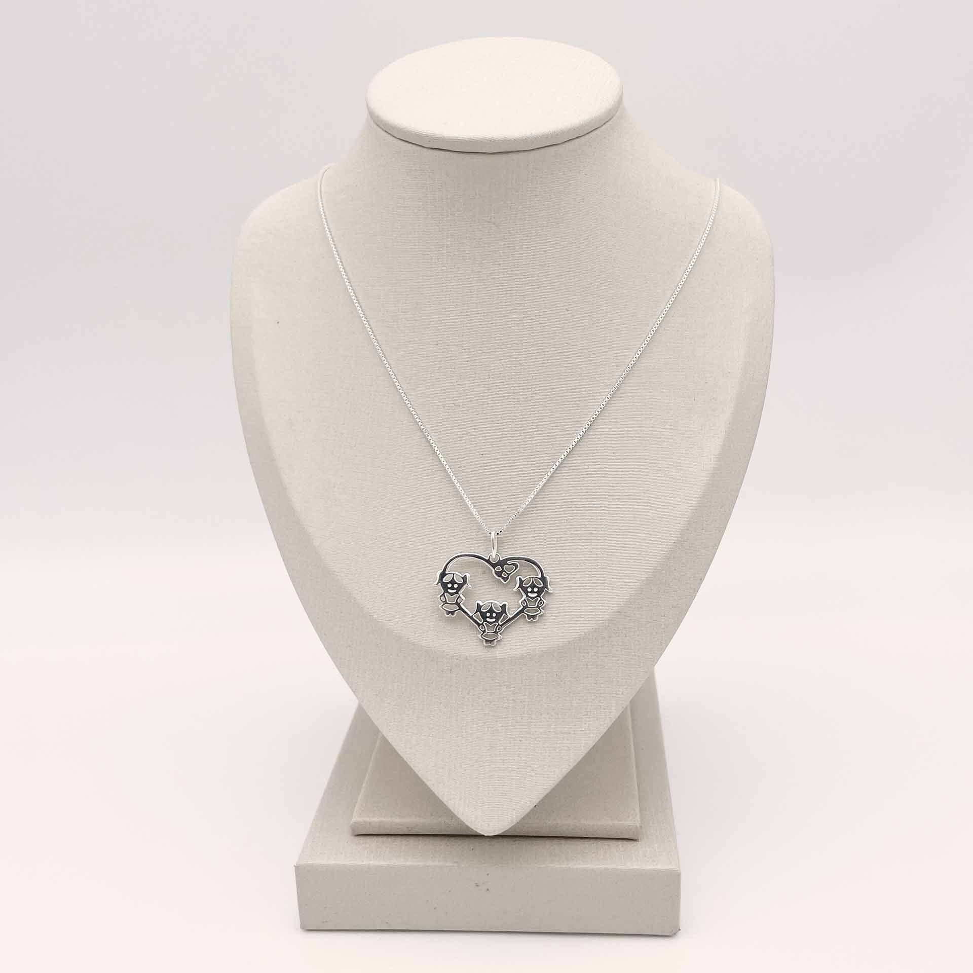 Gargantilha estilo veneziana e pingente de filhos em forma de coração com 3 Meninas.