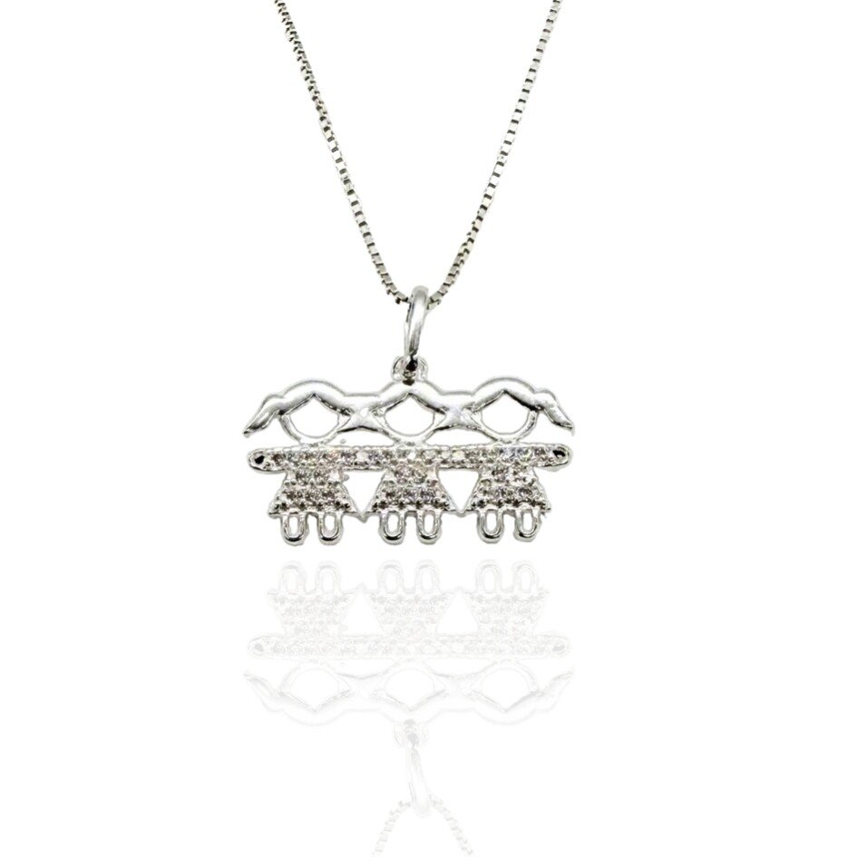 Três amores, um só colar. Gargantilha com pingentes de 3 meninas, simbolizando o laço eterno entre mãe e filhos.