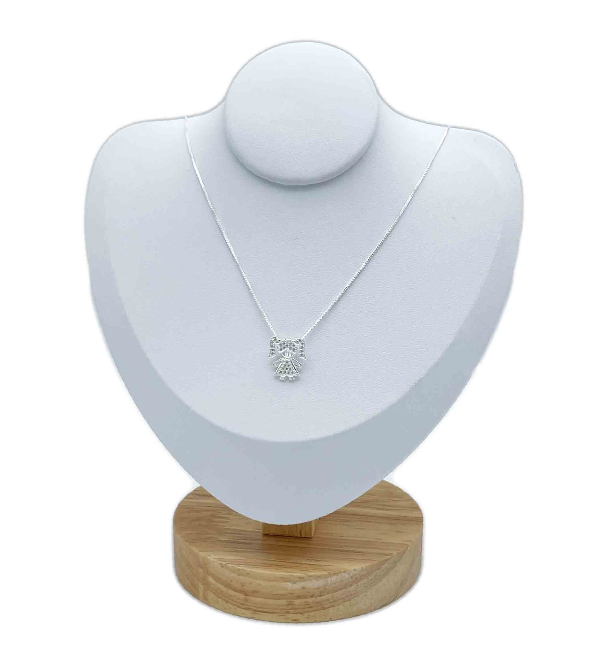 Gargantilha em prata 925 com pingente em formato de menina com zircônias.