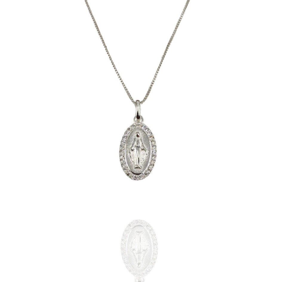 Gargantilha em prata 925 , com pingente Nossa Senhora das Graças com microzircônias.