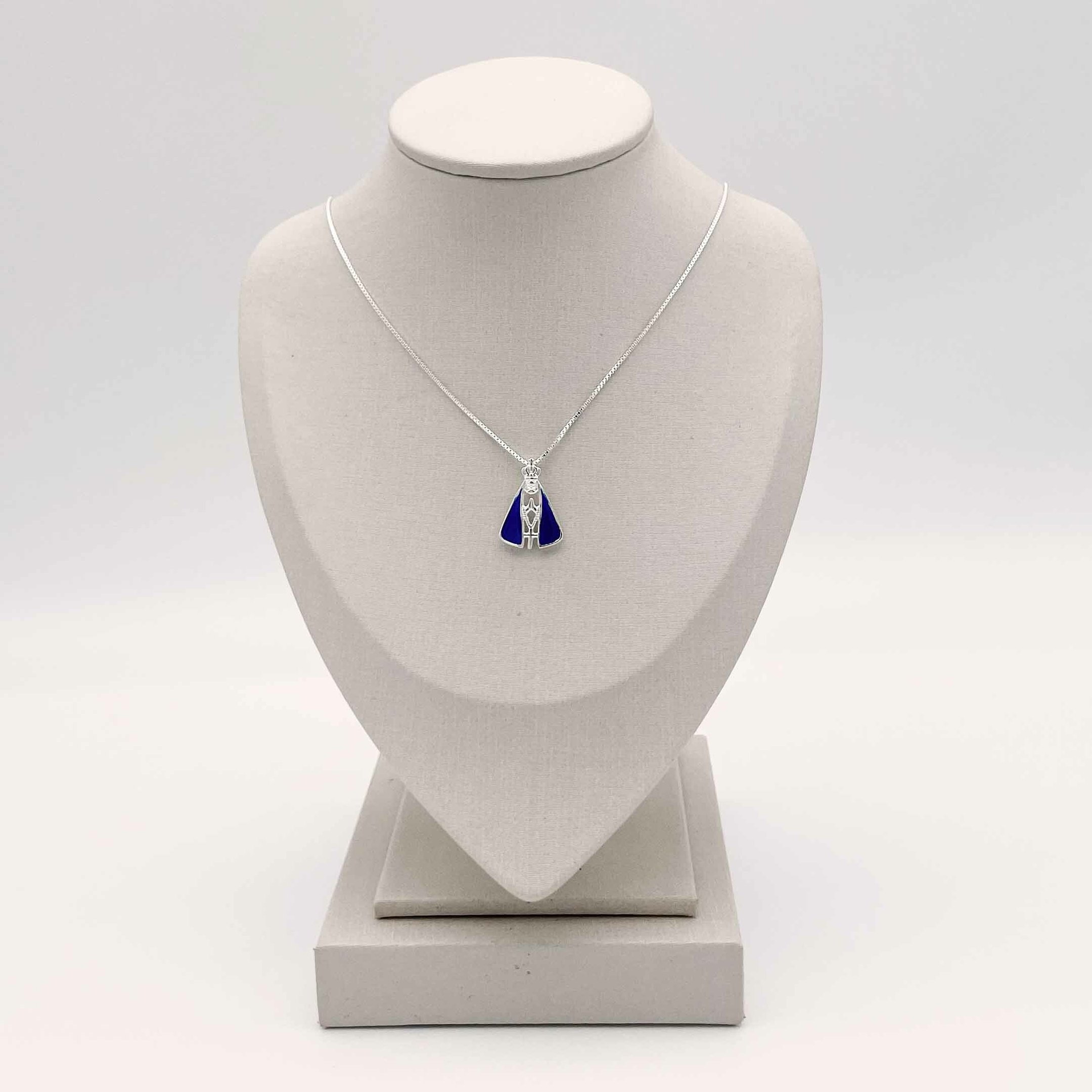 Gargantilha em prata 925 , estilo veneziana, com pingente da imagem de Nossa Senhora.