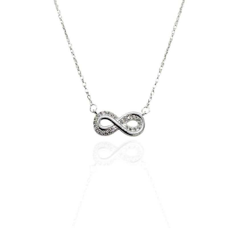 Gargantilha ajustável em prata 925, com pingente do símbolo do infinito cravejado com zircônias. Uma joia delicada que representa amor eterno e conexão infinita.