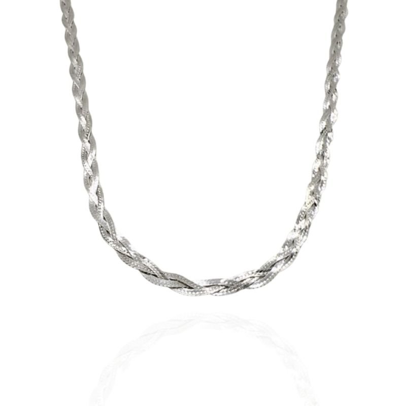 Gargantilha em prata 925, com design trançado de 3 fios, elegante e sofisticada para compor diferentes estilos.