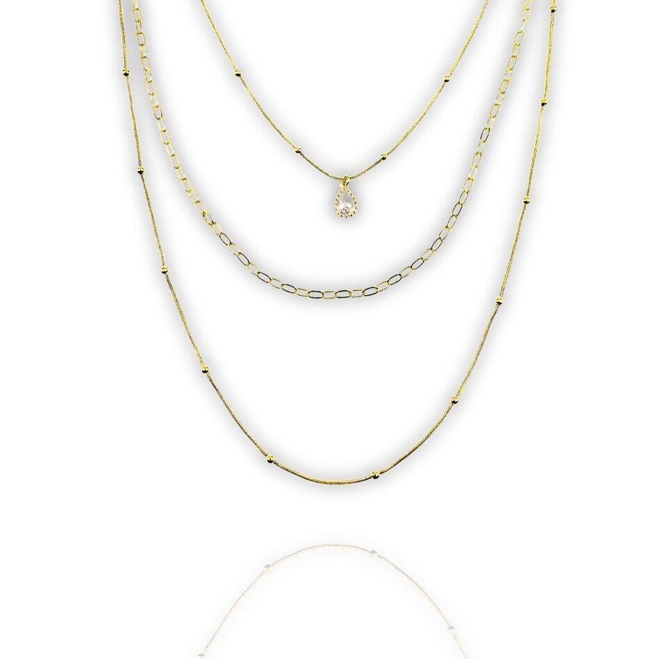 Gargantilha Tripla Dourada Zircônia Gota : 228426 Facebook X Pinterest WhatsApp : R$ 186,90 : R$ 177,56 UN Pix (5% ) R$ 186,90 UN Cartão de Crédito 3x R$ 62,30 - R$ 177,56 UN Pix (5% ) : - + : OK × : 1x R$ 186,90 : R$ 186,90 : 2x R$ 93,45 : R$ 186,90 : 3x R$ 62,30 : R$ 186,90 × : Gargantilha tripla com zircônia em forma de gota.Gargantilha banhada a ouro.Obs.: Gargantilha de tamanho ajustável.#Altura zircônia: 1 cmComprimento gargantilha: 45 cmPeso: 12 gramas