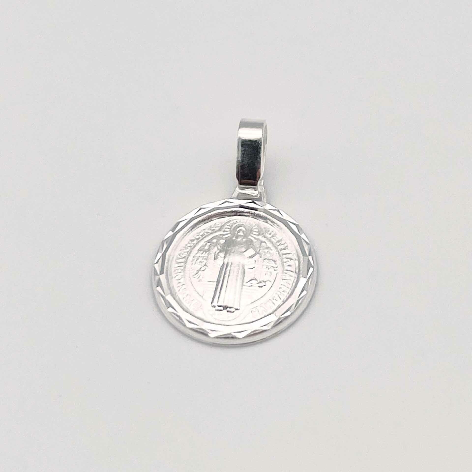 Pingente em prata 925, formato de medalha com a imagem de São Bento.