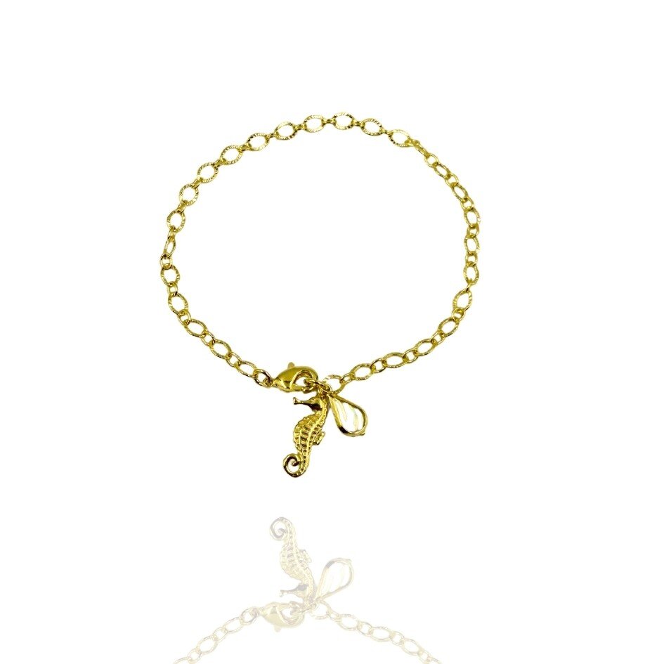 Pulseira com pingente de cavalo marinho com madrepérola.