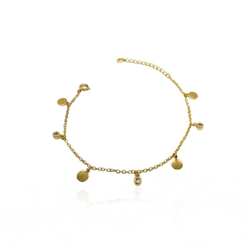 Adicione um toque de sofisticação ao seu visual com nossa pulseira dourada com pingente de chapinha e zircônias. Com acabamento dourado de alta qualidade e pedras de zircônia que brilham como diamantes, essa peça é perfeita para complementar desde produções casuais até looks mais refinados.