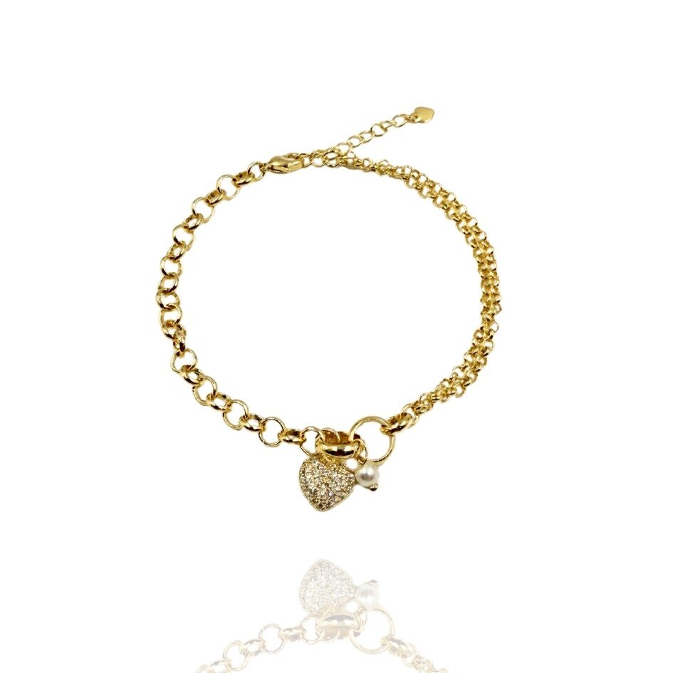 Pulseira banhada a ouro e pingente coração com microzircônias.