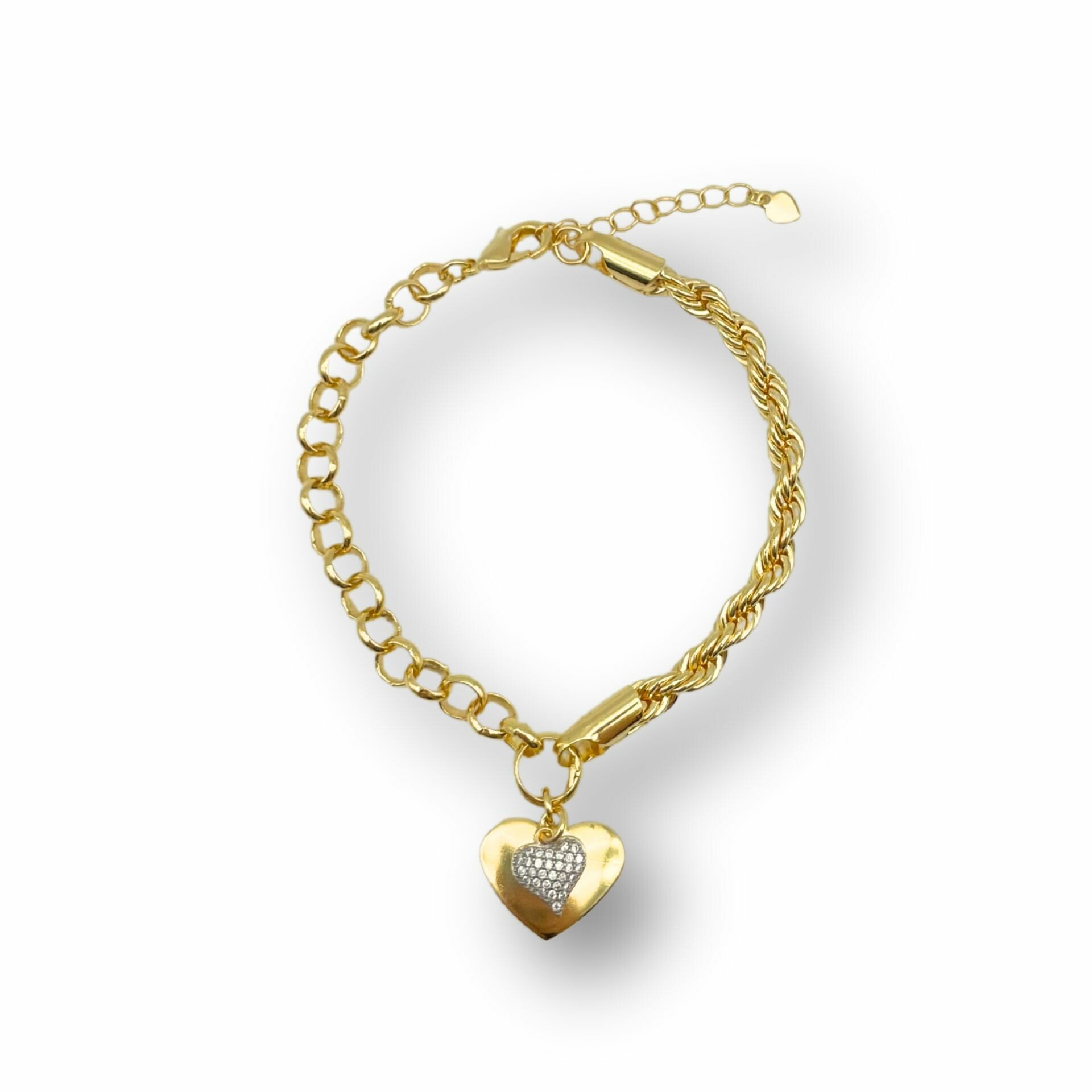 Pulseira banhada a ouro. Dois pingentes em formato de coração coração.