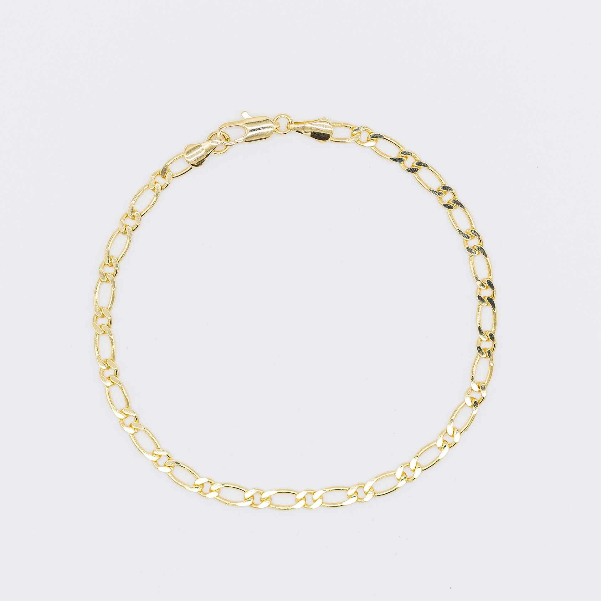 Pulseira banhada a ouro com malha Fígaro 1x1.