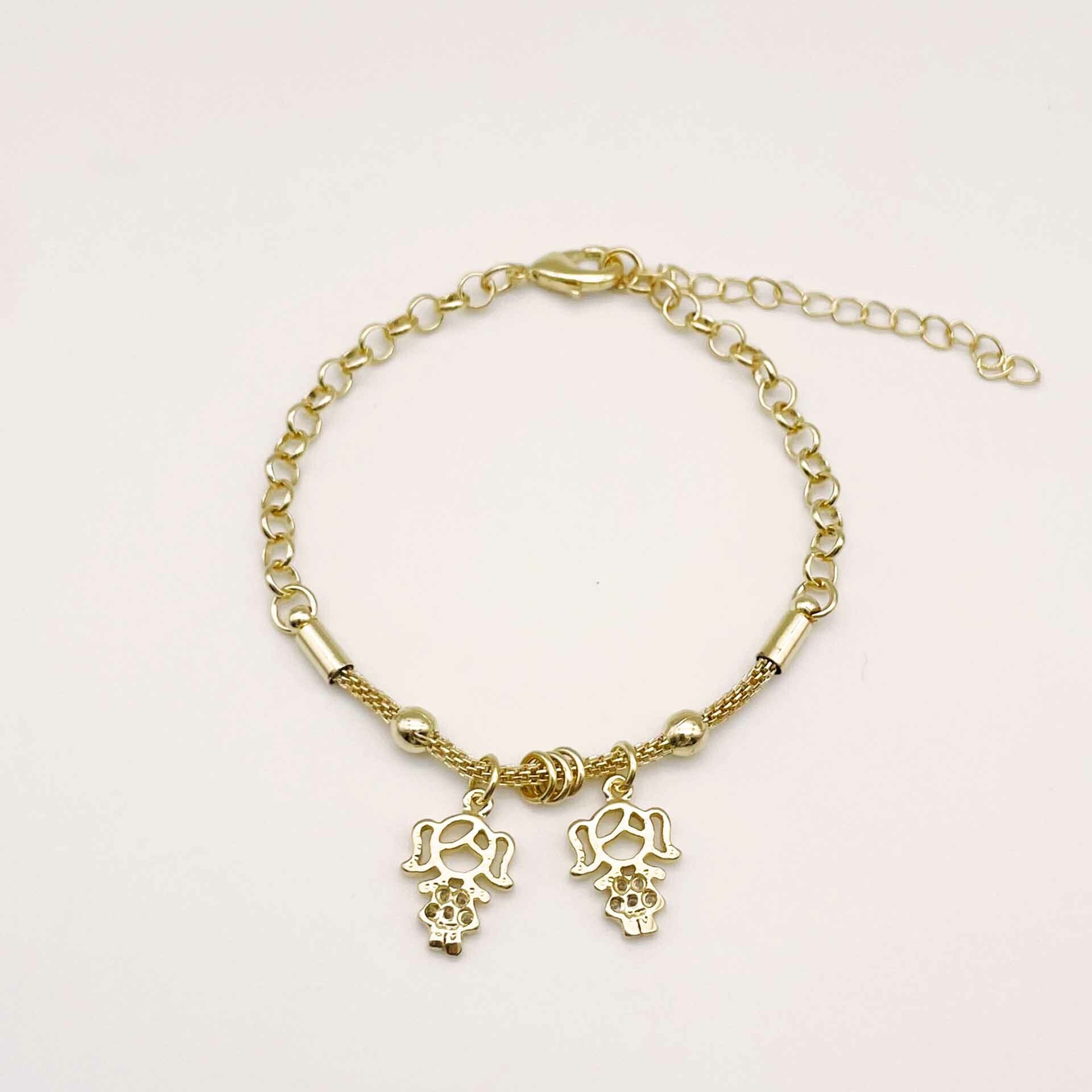 Pulseira banhada a ouro com pingente de 2 meninas.