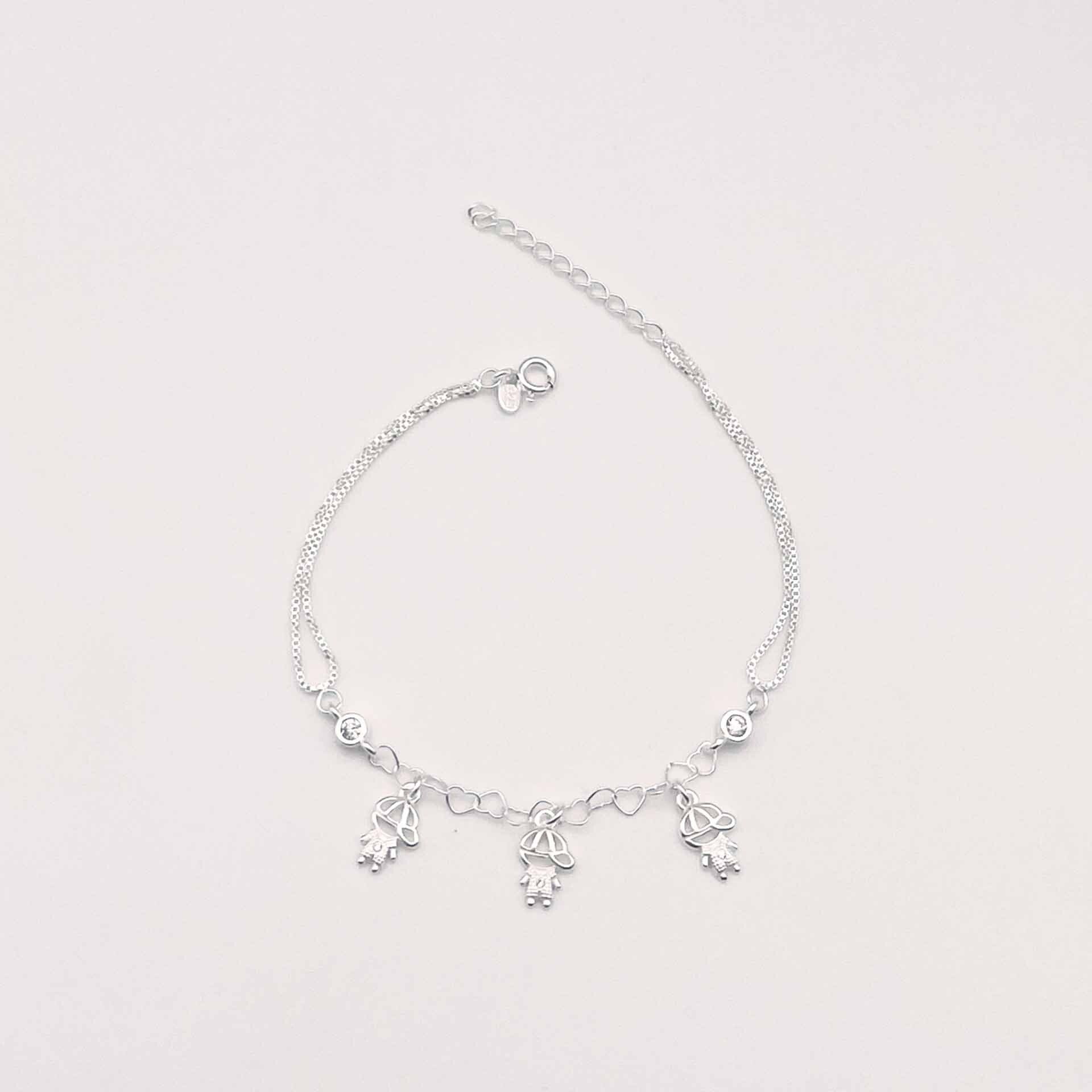 Pulseira filhos em prata 925 com pingente em forma de 3 meninos.