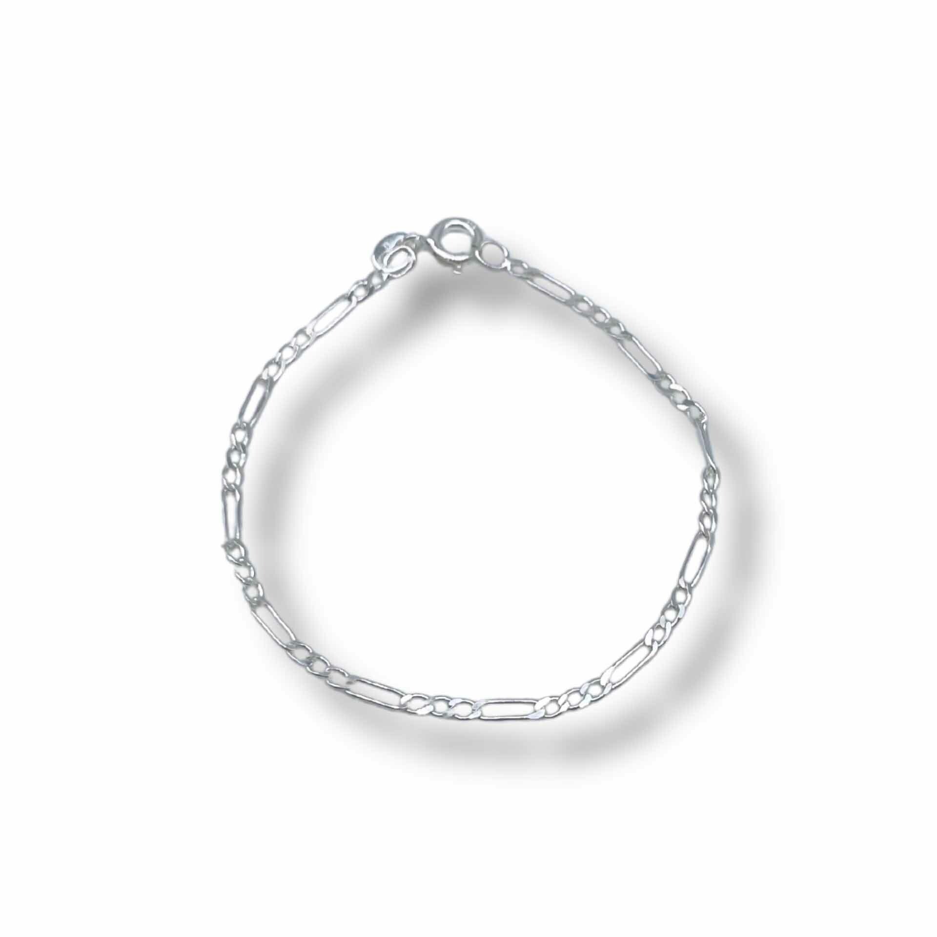 Pulseira em prata 925, modelo italiano com malha Fígaro 3x1.