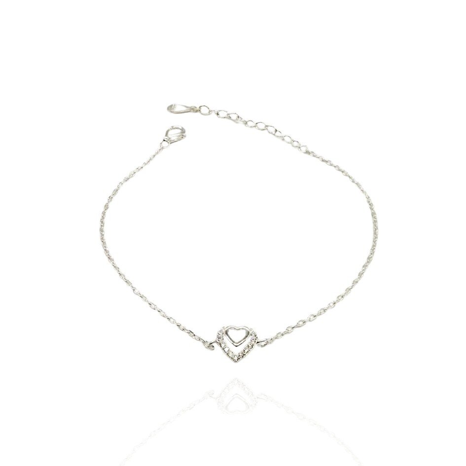 Pulseira em prata 925 e pingente coração com zircônias.