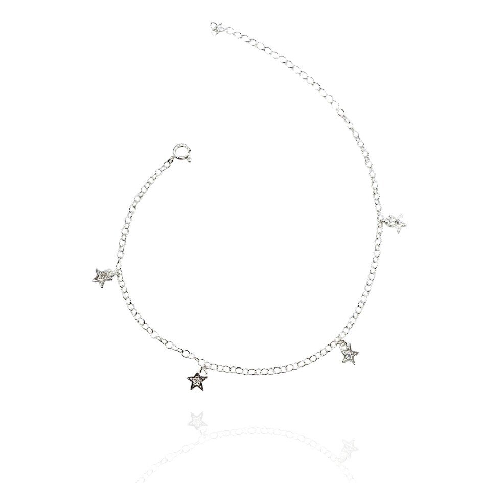 Pulseira em prata 925 com delicados pingentes em forma de estrela, cada um cravejado com zircônia. Com tamanho ajustável, é perfeita para quem busca elegância com um toque de brilho e versatilidade no dia a dia.