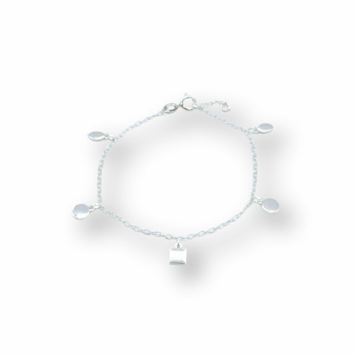 Pulseira com pingentes em formas geométricas.