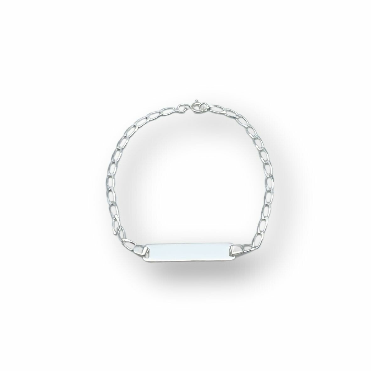 Pulseira em prata 925, com placa para escrita e malha italiana 1x1.