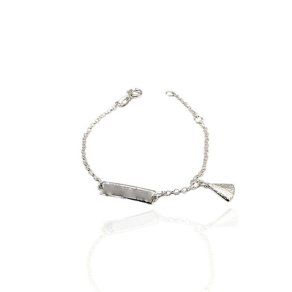 Pulseira em prata 925 com placa para personalizar e pingente de Nossa Senhora Aparecida.