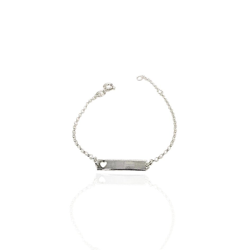 Pulseira em prata 925 com placa para personalizar e um coração vazado.