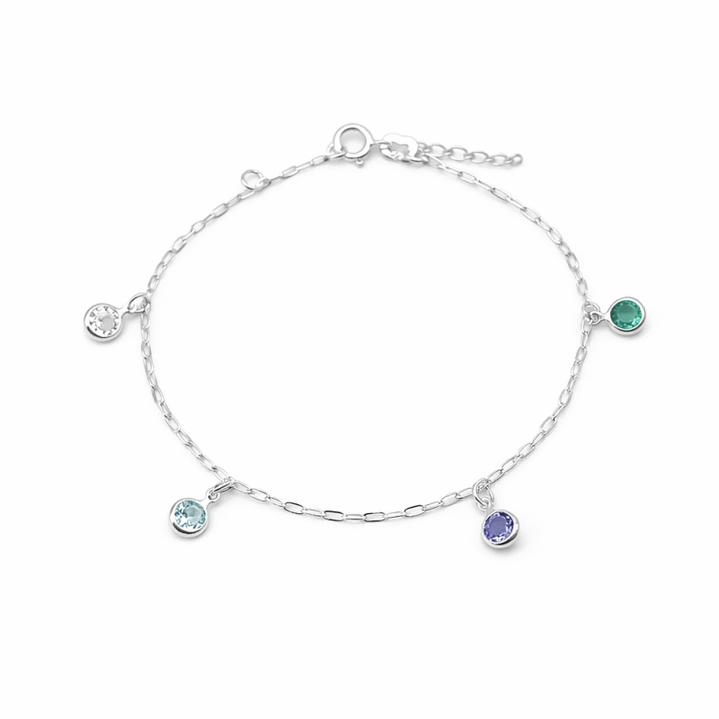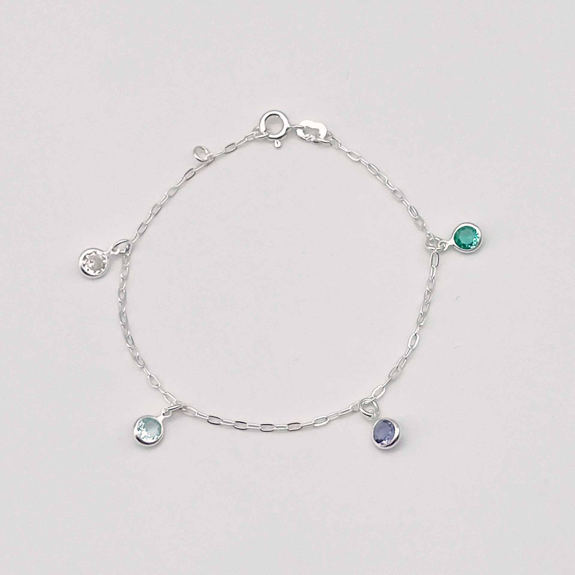 Pulseira em prata 925 e pingentes de zircônias pontos de luz coloridos.
