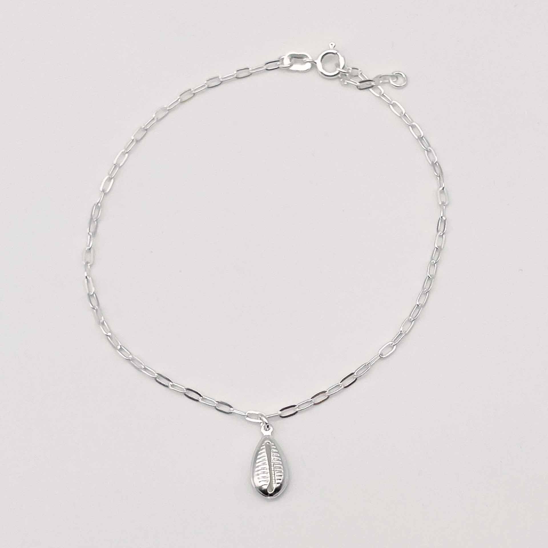 Tornozeleira em prata 925 e pingente em formato de Búzios.