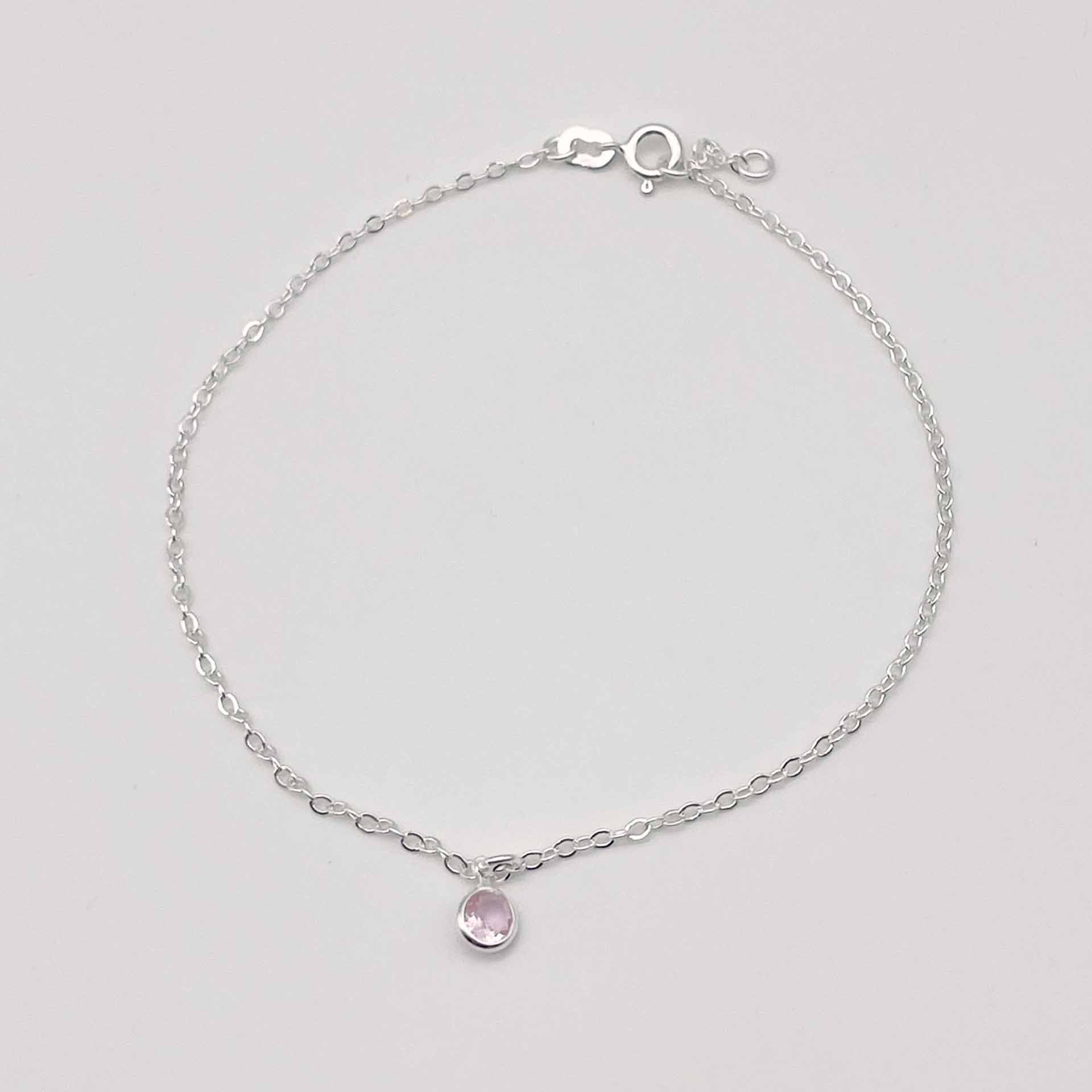 Tornozeleira em prata 925 com zircônia ponto de luz Rosa.